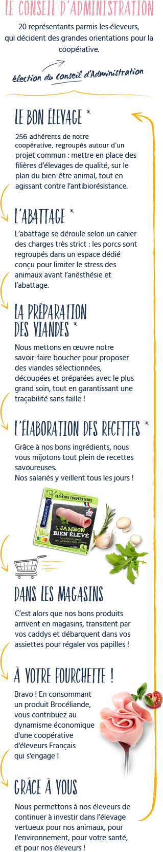 Chez Brocéliande, il n’y a pas d’actionnaires, nos éleveurs sont adhérents : ils détiennent et gèrent la coopérative.